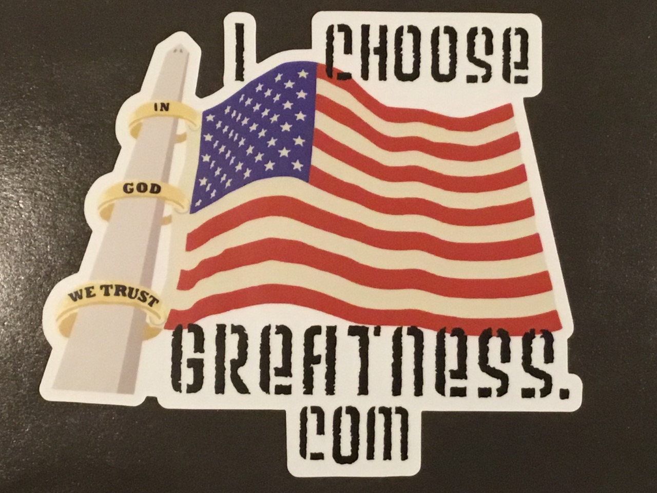 Get your large patriotic “bumper” sticker for the outside of your vehicle. It is made of a removable adhesive back that is ideal for most outside vehicle surfaces and has a durable vinyl that protects the 12″ w. x 10″ ht. sticker from the outside elements.