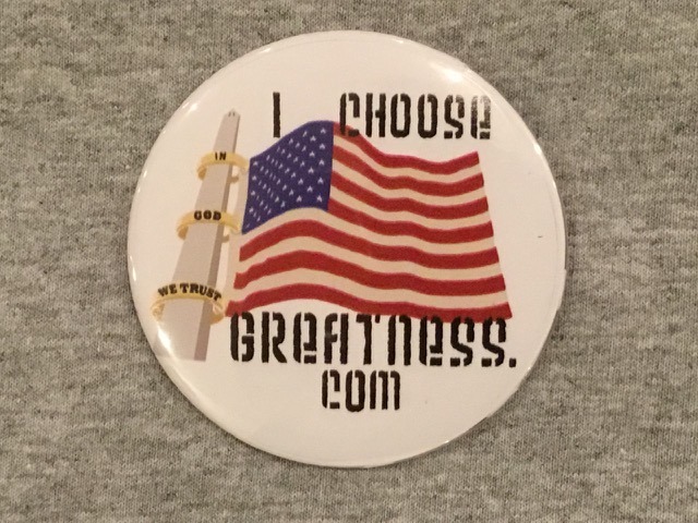 An attractive accessory to pin to your apparel, get this 2.25″ dia. button with the custom design on a white background. It is on a durable metal base with a steel pin back and is easy to wear. Make sure to have extra on hand to give away to those interested in your patriotism.